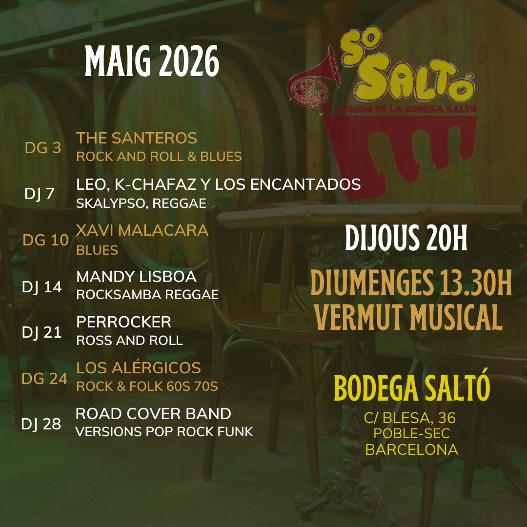 Primera tarima per a molta gent que comença, entre aquestes parets han recitat els Accidents Polipoètics, l’Ester Xargay o els Curtis i Krónia. I han actuat els Che Sudaka, Muchachito, la Kinky Beat, el Joan Garriga de la Troba Kung Fú, o la Ultra Violeta Experience. Diuen que, fins i tot, s’han sentit jams improvisades amb Manu Chao o el guitarrista Madjid Fahem. En una ciutat on cada vegada és més difícil escoltar a músics tocar en directe, la Gran Bodega Saltó segueix oferint una programació eclèctica i plena de sorpreses.